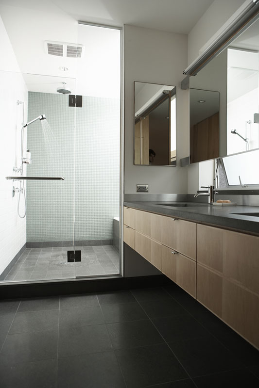 Residential Bathroom with walk in glass shower and great mirrors Residential Bathroom with walk in glass shower and great mirrors